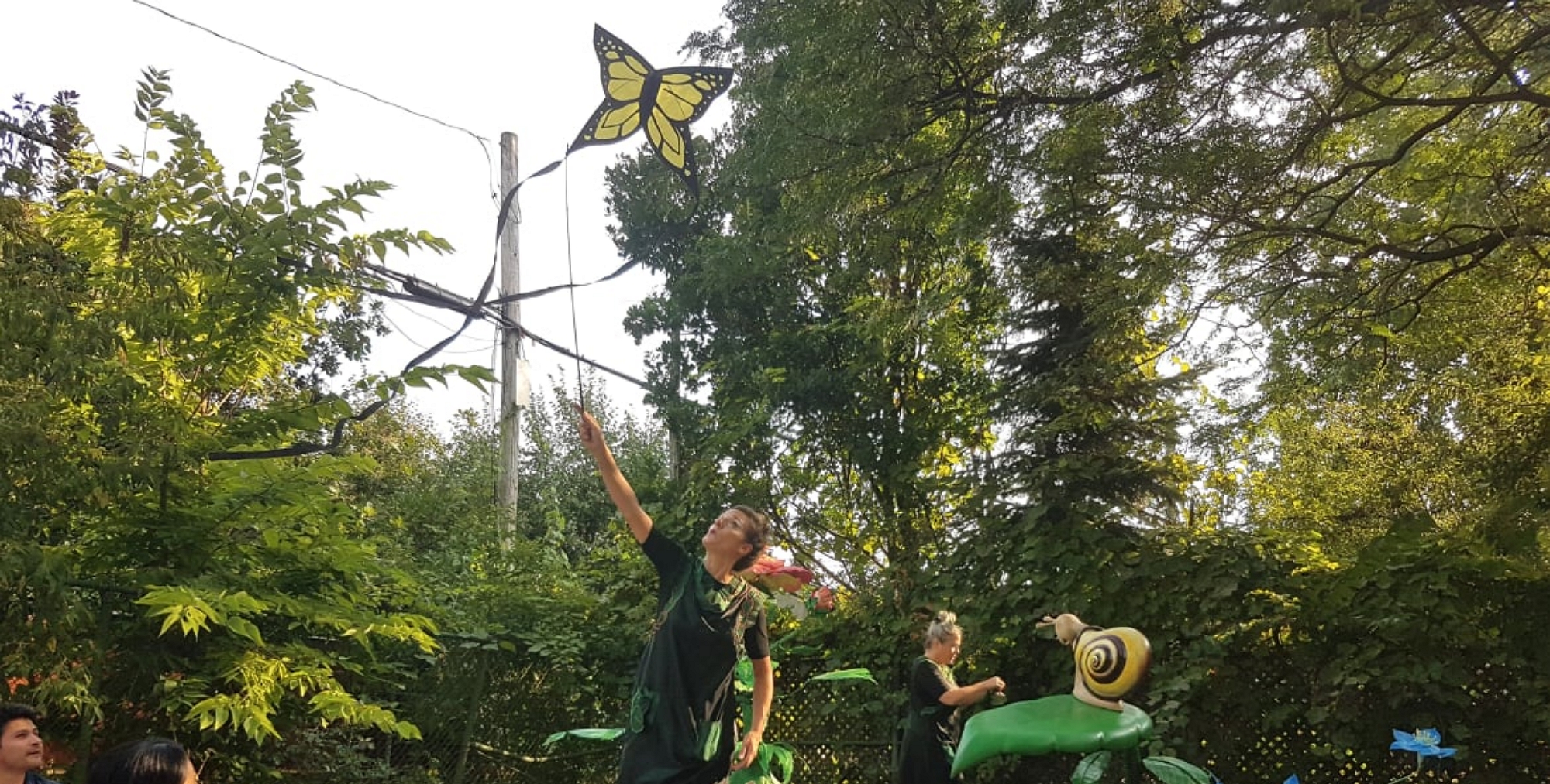 Au petit matin, un escargot mâche une dernière feuille avant de rentrer dans sa coquille. À ses côtés, une rose prend un bain de soleil, profitant de la fraîcheur matinale. Le jardin et ses habitants s’animent joyeusement. Soudain, un vent déchaîné se lève et des ombres menaçantes se fracassent dans le ciel. La tempête passe, le jardin se redresse, mais une chose étrange s’est agrippée aux épines du rosier. Ce spectacle propose au public un voyage ludique au creux d’un jardin, dans le monde minuscule des insectes et des fleurs, où chacun a son rôle à jouer. Emprunt d’une poésie visuelle qui questionne notre lien à la nature, ce spectacle met en scène deux elfes s’amusant à donner vie au jardin, à ses bestioles et ses fleurs.
