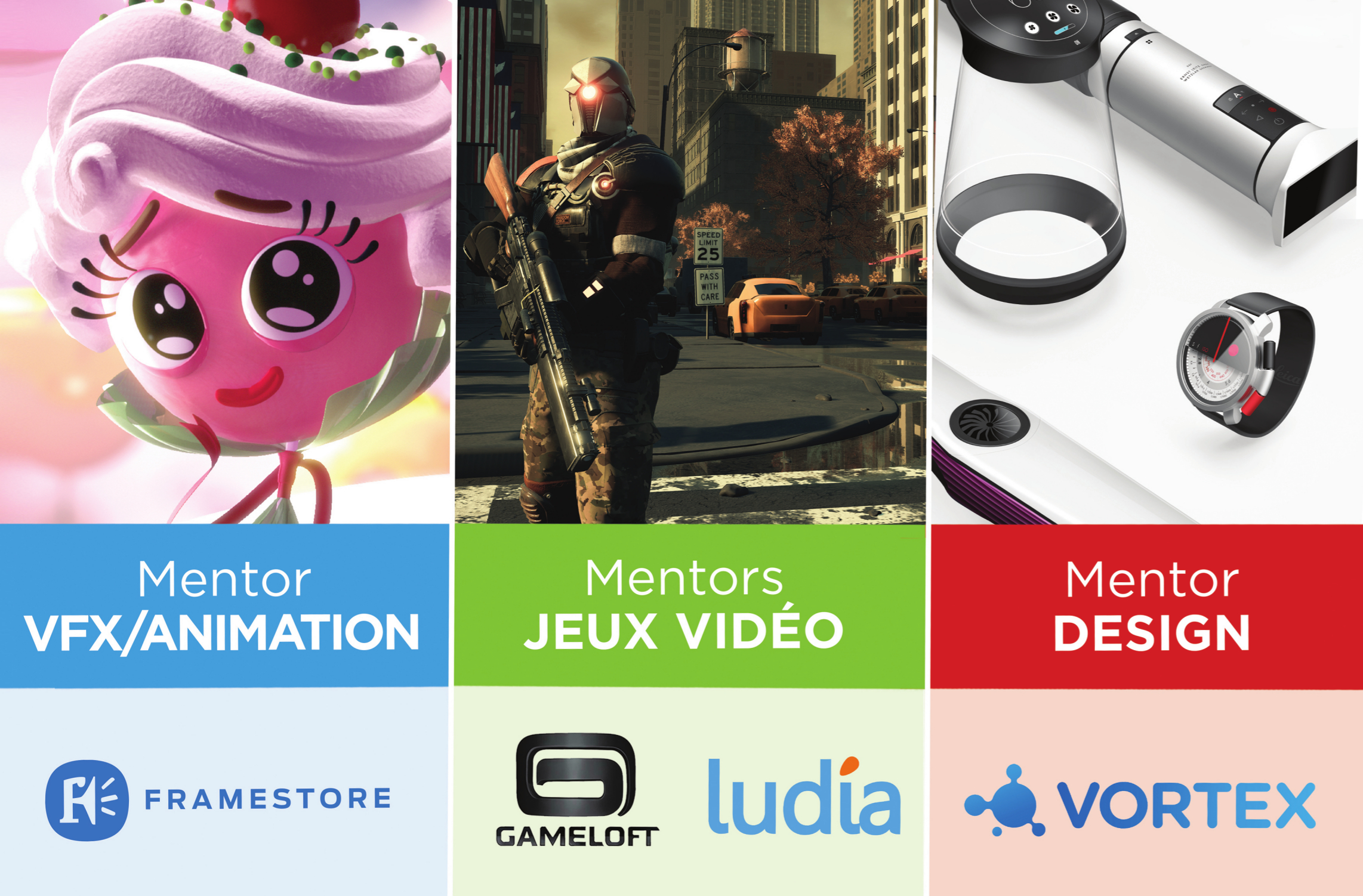 La soirée Portfolio + Bourses + Mentors, qui se tiendra le 27 avril de 16 h à 20 h, permettra aux étudiants, désirant intégrer Rubika, de présenter leur travail aux professionnels d’entreprises de création renommées telles que Gameloft, Vortex, Ludia et Framestore. Il s’agira d’une occasion privilégiée pour discuter et pour échanger avec ces figures importantes, mais surtout de rayonner et de se faire remarquer tout en recevant une opinion pertinente sur leur travail, avant de le présenter au concours d’admission se tenant quelques semaines plus tard. Le jury choisira des talents et remettra 5000 $ en bourses répartis sur trois filières, qui seront déduits des frais de scolarité.