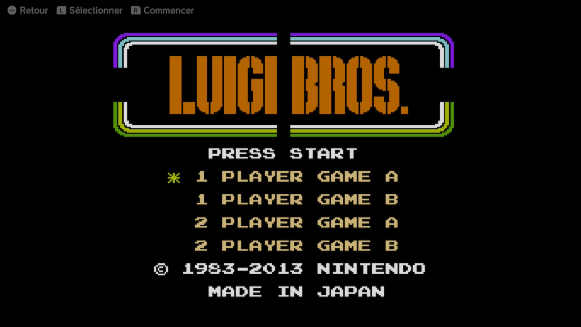 - Luigi Bros. : un mini-jeu clone du jeu d’arcade Mario Bros. de 1983 mais, ce coup-ci, mettant Luigi en vedette;