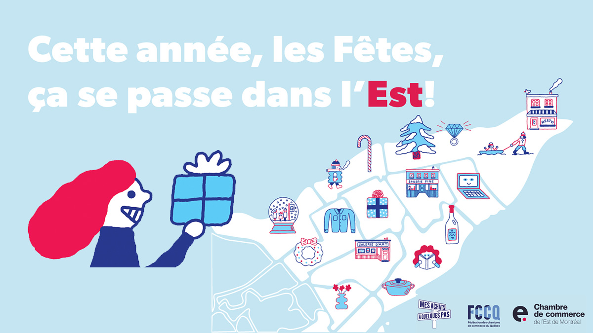 La Chambre de commerce de l’Est de Montréal (CCEM) est fière de lancer pour la première fois cette année la campagne Les Fêtes, ça se passe dans l’Est, une initiative qui fait d’une pierre trois coups en associant solidarité, économie locale et participation citoyenne. S’inscrivant dans le cadre du programme Mes achats à quelques pas, de la Fédération des chambres de commerce du Québec (FCCQ), cette campagne vise à renforcer les liens entre les citoyen(ne)s et les commerçants locaux.