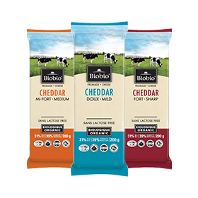 Gouda, Suisse, Parmesan, Cheddar vieilli 1 an, 2 ans ou 3 ans font partie des variétés produites au Québec. Les cheddars vieillis sans lactose comptent parmi les fromages les plus populaires. Faits de lait thermisé biologique, cela leur permet d’atteindre un goût plus prononcé et apprécié des connaisseurs. Leur savoureux goût de beurre et de noisette est un peu plus corsé que celui des autres fromages produits par Biobio.