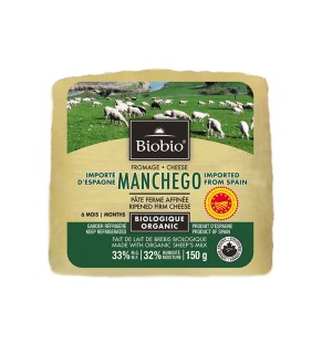 Son origine remonte à plusieurs siècles et il est reconnu comme le plus réputé fromage espagnol. Importé d’Espagne, le Manchego Biobio est un fromage à pâte ferme pressée biologique, fabriqué avec du lait pasteurisé de brebis. Une riche saveur du terroir reflétant la saison de l’année, au goût intense et développé qui se révèle fondant au palais, souvent caramélisé et douceâtre.