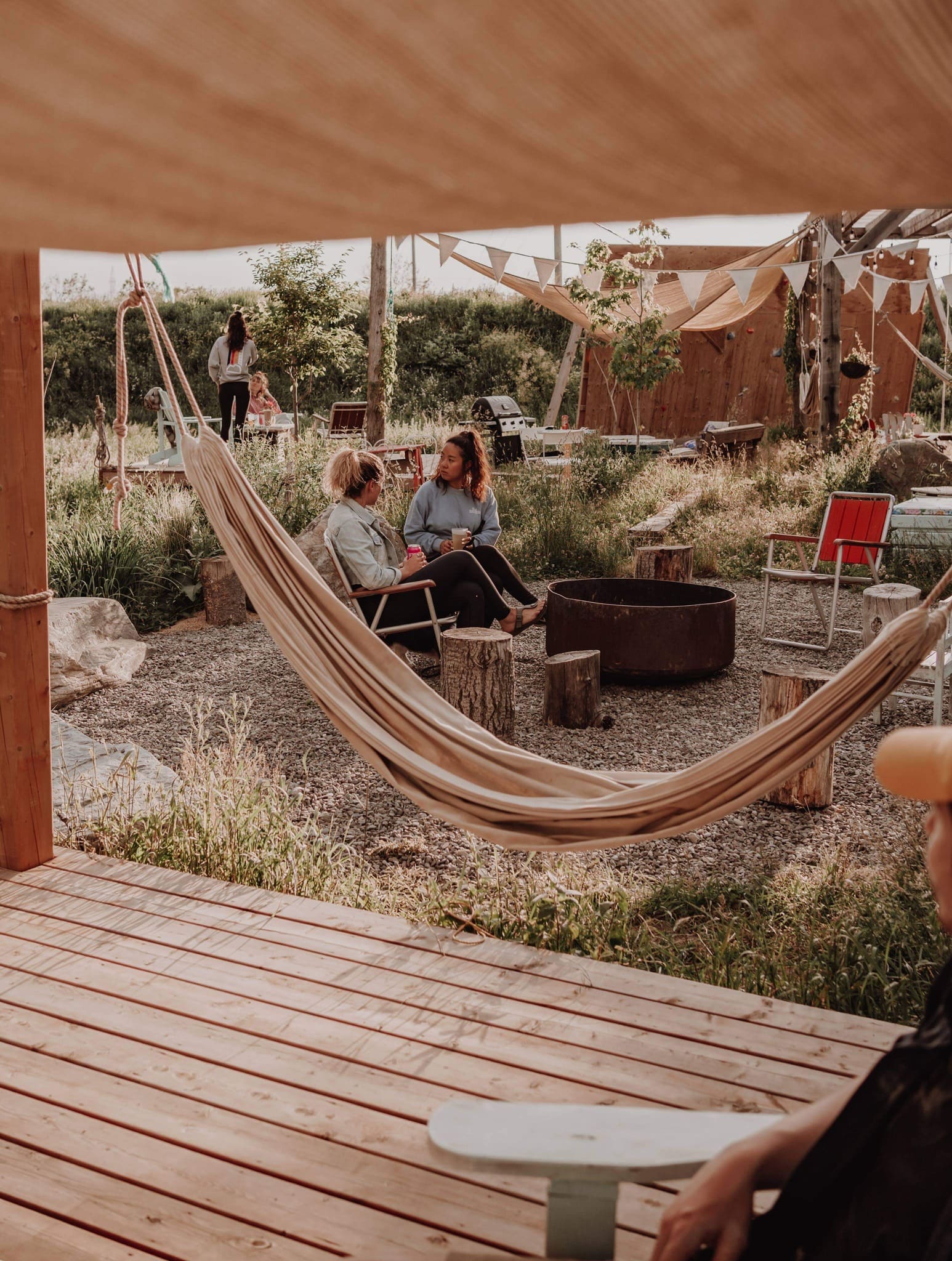 Ce petit secret bien gardé de la région, qui propose un centre d’escalade de bloc, est en effet bien plus qu’un centre sportif coloré. Sa grande terrasse en nature, vue sur la montagne de Bromont, propose tout ce qu’il faut pour ne plus jamais vouloir la quitter. Hamacs, terrain de volley de plage et de spikeball, jacuzzi, parc à slackline, BBQ en auto-service (apportez votre bouffe ou achetez-en sur place!), boutique de vêtements auxquels on donne une deuxième vie, pit à feu, balançoires et plates bandes comestibles offrent un décor de rêve pour quiconque vient profiter de ce café-bistro-bar qui sert des bières de microbrasseries locales, du café italien de spécialité, des ramens et dumplings et plusieurs autres repas un peu originaux inspirés d’un peu partout dans le monde.
