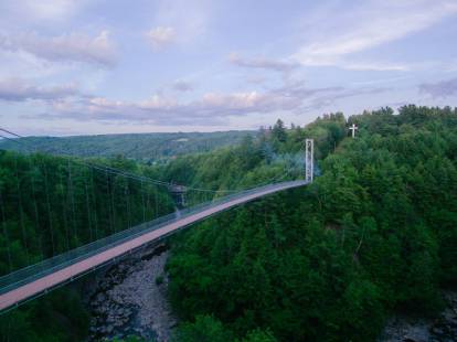 Un incontournable dans la belle région des Cantons-de-l’Est! Profitez de la magnifique vue que vous aurez sur le plus long pont suspendu pour piétons en Amérique du Nord en vous procurant un accès pour la randonnée pédestre. Amateurs de vélo de montagne et de camping, le site offre de multiples possibilités sans oublier Foresta Lumina, ce parcours nocturne illuminé et renouvelé annuellement qui a été développé par le Parc et Moment Factory. On dit que les fées écoutent les souhaits de ceux qui laissent parler leurs cœurs. Quel sera le vôtre?