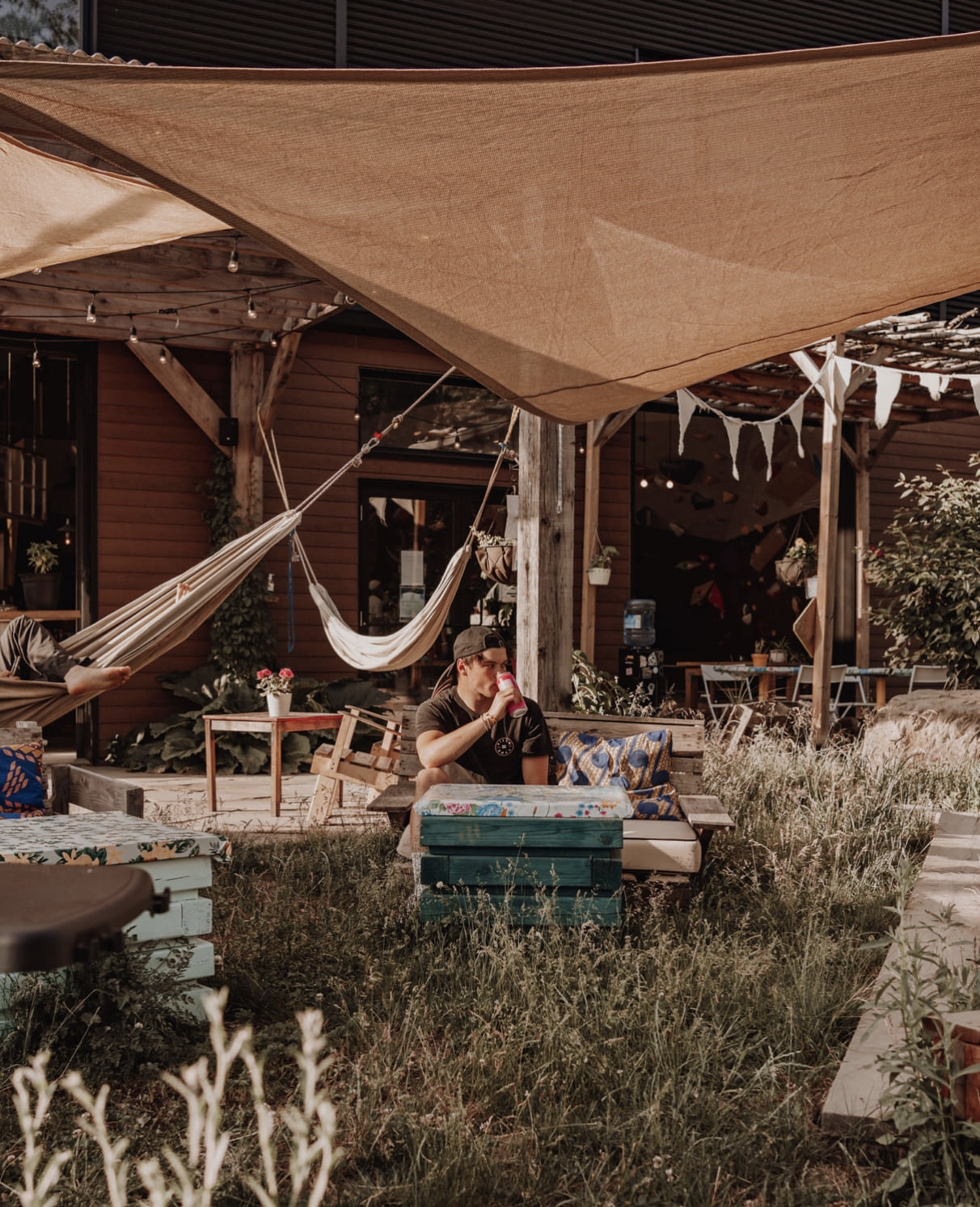 Ce petit secret bien gardé de la région, qui propose un centre d’escalade de bloc, est en effet bien plus qu’un centre sportif coloré. Sa grande terrasse en nature, vue sur la montagne de Bromont, propose tout ce qu’il faut pour ne plus jamais vouloir la quitter. Hamacs, terrain de volley de plage et de spikeball, jacuzzi, parc à slackline, BBQ en auto-service (apportez votre bouffe ou achetez-en sur place!), boutique de vêtements auxquels on donne une deuxième vie, pit à feu, balançoires et plates bandes comestibles offrent un décor de rêve pour quiconque vient profiter de ce café-bistro-bar qui sert des bières de microbrasseries locales, du café italien de spécialité, des ramens et dumplings et plusieurs autres repas un peu originaux inspirés d’un peu partout dans le monde.