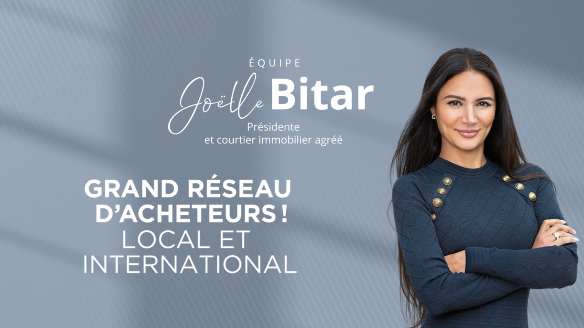 Grâce à un budget annuel de mise en marché de plus de 500 000 $, Joëlle Bitar vous propose une visibilité locale et internationale dans plus d’une centaine de pays. Vous bénéficiez ainsi de nombreuses vitrines à fort achalandage, dont www.joellebitar.com, Remax.ca, Centris.ca (MLS), ainsi que d’annonces dans des publications à grand tirage.