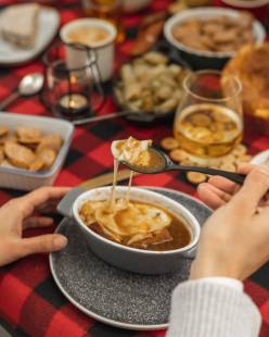 Ne manquez pas les incontournables : la soupe à l’oignon spéciale du domaine avec une touche d’érable au gratin de fromage Oka et le gargantuesque étagé campagnard, qui marie sucré et salé à merveille. De quoi éveiller les papilles gourmandes et épicuriennes aux saveurs de notre terroir québécois.