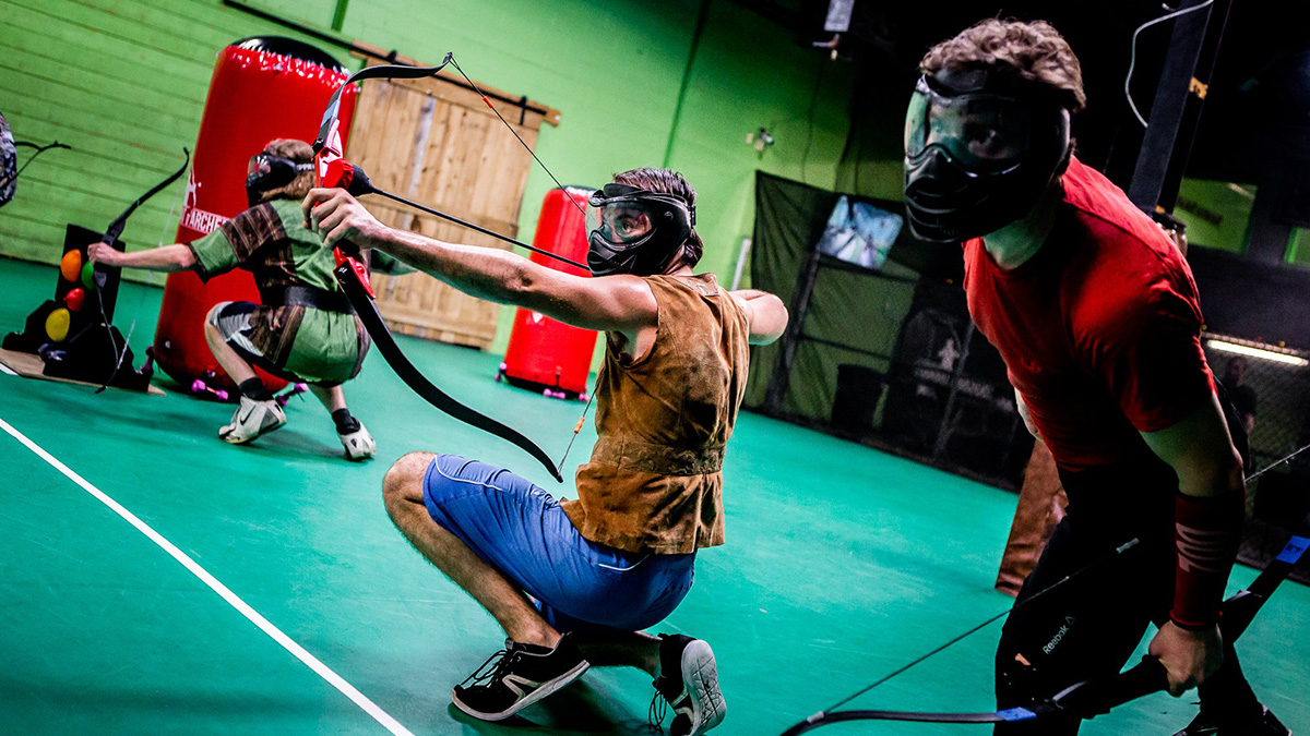 Imaginez. Vous vous apprêtez – avec vos amis, vos collègues, et pourquoi pas, votre famille! – à recréer une bataille médiévale épique dans l’arène des combats d’archers, un joyeux mélange de tir à l’arc, de paintball et de ballon chasseur. Deux équipes s’affrontent en face à face, jusqu’à 50 joueurs simultanément, dans une guerre d’arcs et de flèches en mousse tout à fait sécuritaire.