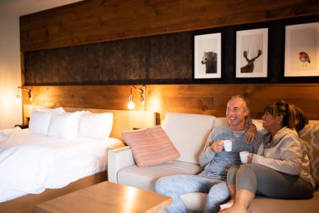 La plupart de ses 54 unités offrent un balcon ou une terrasse avec vue imprenable sur le lac et les montagnes. À même l’hôtel, le bistro Kóz vous propose une cuisine d’inspiration méditerranéenne unique parfaite à partager, une impressionnante carte des vins et des cocktails colorés. Vous pouvez y profiter des belles journées d’été avec sa grande terrasse deux étages donnant sur le lac!