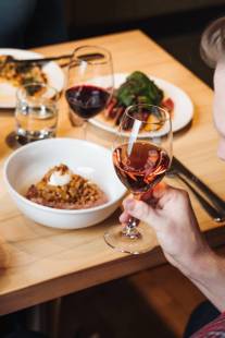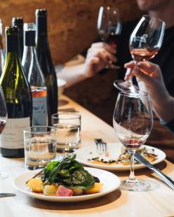Le menu de petites assiettes et de plats à partager permet de prendre une bouchée ou de profiter d’un repas complet. La cuisine se veut savoureuse et sans prétention : des ingrédients de grande qualité et des préparations simples afin de laisser les saveurs s’exprimer pleinement et laisser toute sa place au vin.