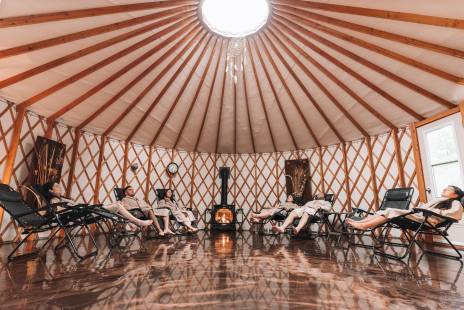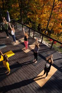 Une salle multifonctionnelle de près de 1 000 pieds carrés a été aménagée pour la tenue d’ateliers de groupe; une magnifique yourte en forêt est disponible pour des cours de yoga, méditation, Qi Gong et autres. En semaine, ces cours sont offerts gratuitement aux clients en location individuelle.