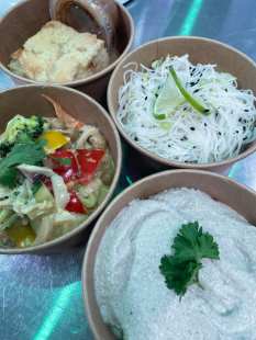 Ça commence avec les glaces à l’azote tel que Rose Noir, Crème Brûlée ou Je suis un Arbre, puis les Cold Dogs, préparés avec des pains briochés chauds et offerts avec une sélection de condiments tels que la marmoutarde à l’argousier, le fruit-chop de pimbina ou la relish bleue (bleuet, maïs et épices). Il y a aussi des Arbrapapas aux essences d’arbres et des YogaSodaMan et des barbotines que l’on peut aromatiser à son goût à partir d’une sélection de saveurs originales faites maison. Sans oublier les Chic-Chaud to Go! tel que le Général Tao-Côté fait d’Argousier et d’ail noir et Chic-Taouk!