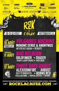Au fil des ans, l’équipe de Rock la Cauze a présenté des formations comme Pennywise, Reel Big Fish, Anti-Flag, Billy Talent et Rise Against. Cette année, ce sera au tour de Three Days Grace, Bad Religion, Alexisonfire, Goldfinger et August Burns Red, pour ne nommer que ceux-ci.
