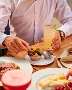 Évidemment, on ne pense pas à tout ça au moment de survoler la carte des cocktails, attablé à la terrasse, à l’ombre d’une pergola amovible, à l’abri du soleil rougeoyant. Ni à la somme de travail que représente l’ouverture d’un nouveau restaurant dans un nouveau quartier au moment même où ce dernier est en train de s’élever du sol. À l’image du REM, le Réseau express métropolitain et la gare autour de laquelle s’articule le projet du quartier Solar. Toutes ces petites choses qui, mises ensemble, ajoutent un cachet distinctif à cette brasserie des Enfants Terribles. Comme les plants de basilic, de sauge et de petits piments cultivés sur la terrasse par les membres de l’équipe, entre les nombreuses plantes et autres fleurs qui enjolivent l’espace vert qui borde le restaurant.