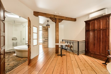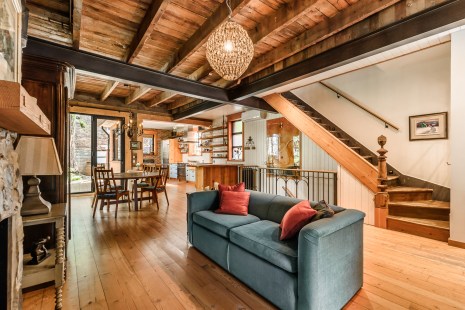 De larges fenêtres architecturales baignent les lieux de lumière naturelle, alors que l’agencement harmonieux des planchers en bois de pin, des hauts plafonds et des poutres suspendues confère à l’ensemble un mélange de charme d’antan et de modernité. De son côté, l’aménagement de la suite des maîtres se révèle magistral avec ses grandes fenêtres horizontales et son foyer au gaz. Tout comme le boudoir est charmant avec son petit balcon de bois, les chambres d’invités luxueuses et le design de la grande salle de bain d’une grande élégance.