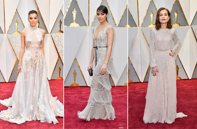 Décidément, le blanc fait fureur! Plusieurs vedettes sont arrivées vêtues de cette couleur habituellement réservée aux robes de mariées. On a aussi vu plusieurs déclinaisons du blanc, comme des couleurs champagne, lavande très pâle et gris bleuté.