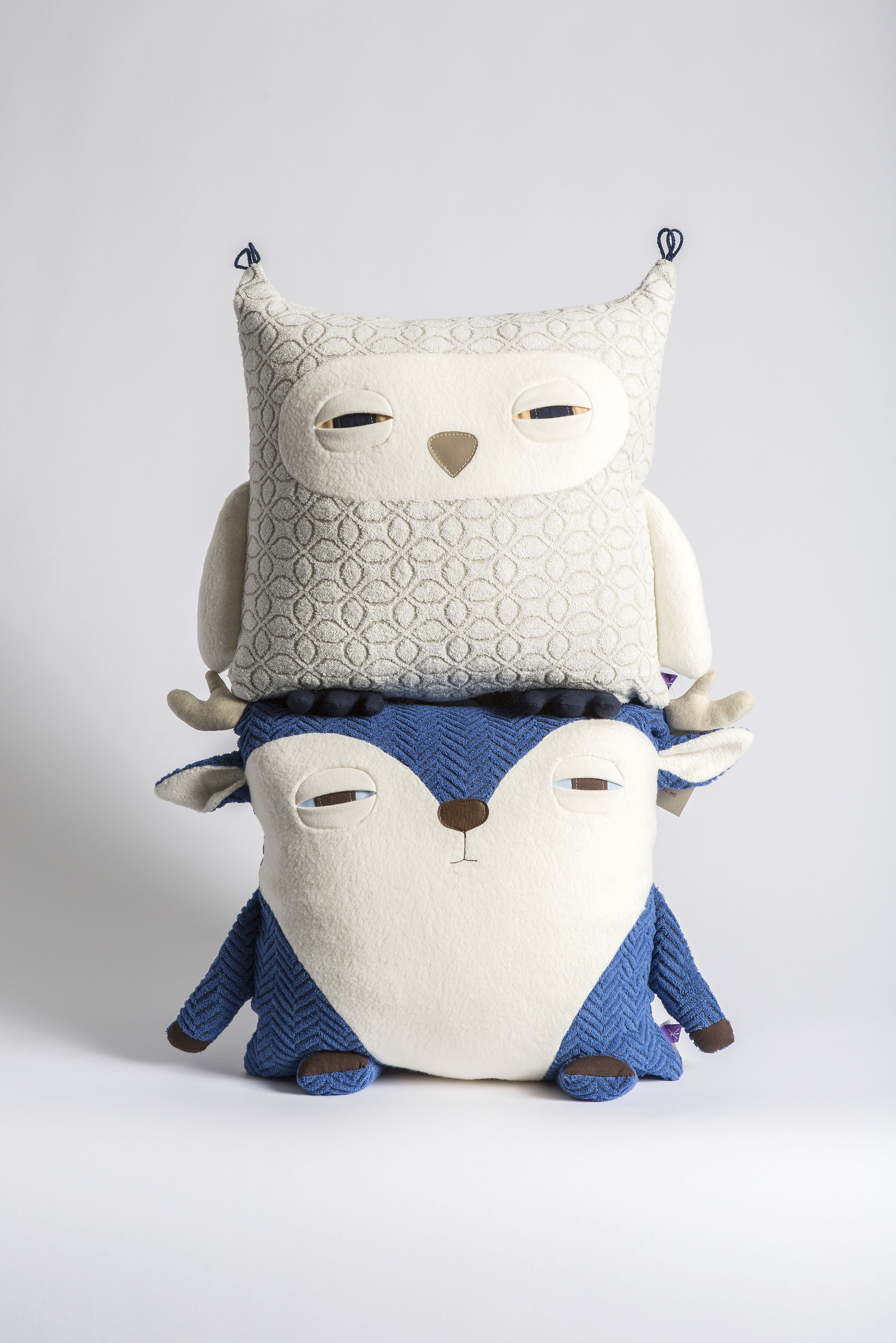 Bien connue pour ses peluches et ses coussins carrés à l’effigie d’animaux d’ici et d’ailleurs, Velvet Moustache, l’entreprise de Majorie Labrèque-Lepage, participe aussi à cette collection unique avec des versions exclusives de son Hibou de minuit et de son Caribou nordique.