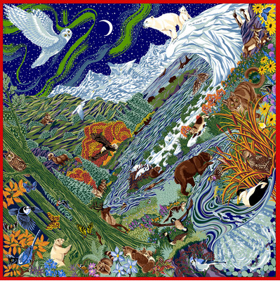 Pour le 150e anniversaire du Canada, la maison française Hermès a produit un carré de soie en édition limitée représentant la faune et la flore du pays tout en dépeignant les quatre saisons.