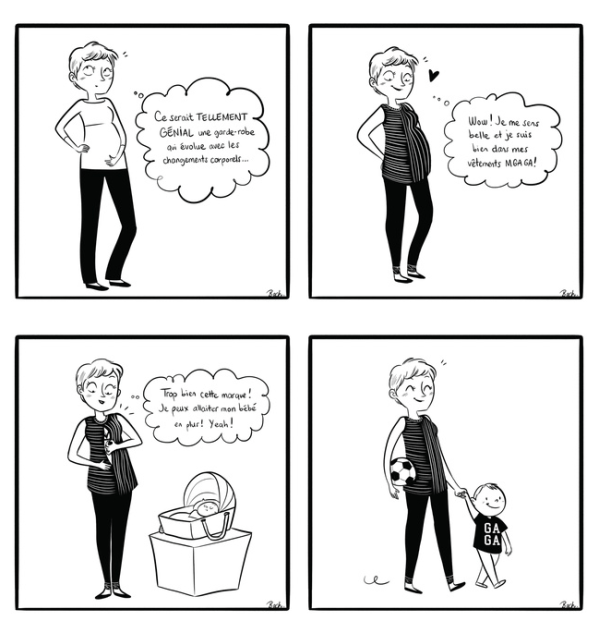 Les vêtements de maternité qu’on ne porte que durant quelques mois sont en voie de disparition. Leur caractère éphémère ne plaît pas aux écolos ni à celles qui ont un petit budget. De plus en plus de blogueuses offrent d’ailleurs leurs trucs pour porter des morceaux tirés de leur garde-robe habituelle toute la grossesse. C’est pourquoi l’idée derrière Maman GAGA séduit: outre la promotion de l’allaitement sans tabou, la marque propose aussi une solution «évolutive» qu’on portera année après année; entre les grossesses et, surtout, après.