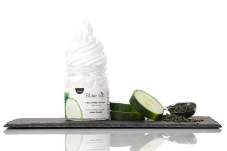 Ils sont beaux, les petits pots de savon fouetté de Blanc soja! L’entreprise de Longueuil, aussi renommée pour ses bougies à base de cire de soja, propose ces savons hydratants contenant du beurre, de l’huile de soja et des fragrances naturelles obtenues simplement par la macération de fruits, d’herbes ou de fleurs dans de l’huile.
