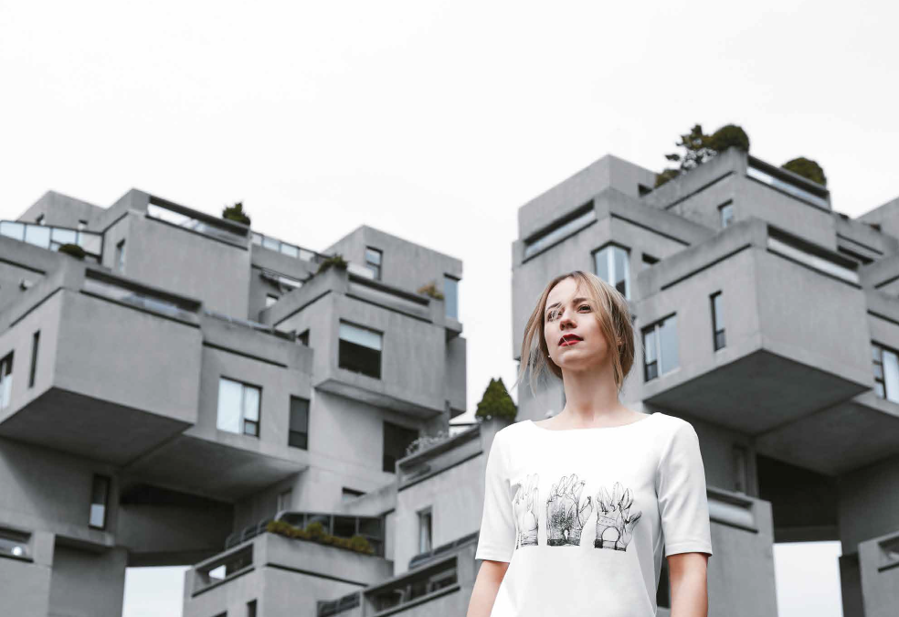 [Mise à jour]: La collection, dont les prix varient de 195$ à 1895$, sera entièrement confectionnée à la main à Montréal et compte un manteau en cachemire italien, deux vestes en mérinos et trois robes. Le manteau et les vestes seront fabriqués en seulement 20 exemplaires numérotés.