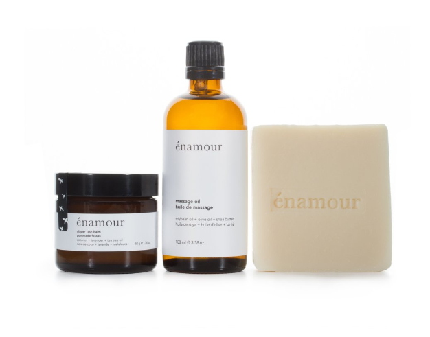 Le kit de départ (comprenant un savon, une pommade pour les fesses et une huile de massage), Énamour, 50$