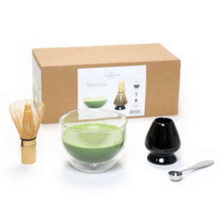 Ensemble pour la préparation du matcha comprenant un bol en verre, un chasen, un porte-chasen et une cuillère, Camellia Sinensis, 46$