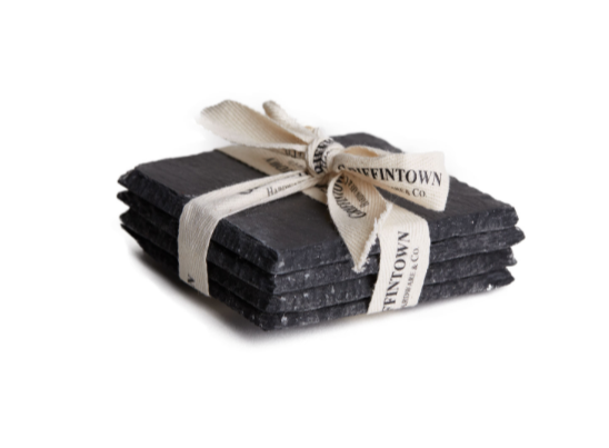 Ensemble de 4 sous-verres en ardoise, Griffintown Hardware, 24$ sur le site C’est beau
