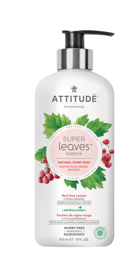 Savon à mains Super leaves Feuilles de vigne rouge, Attitude, 7$