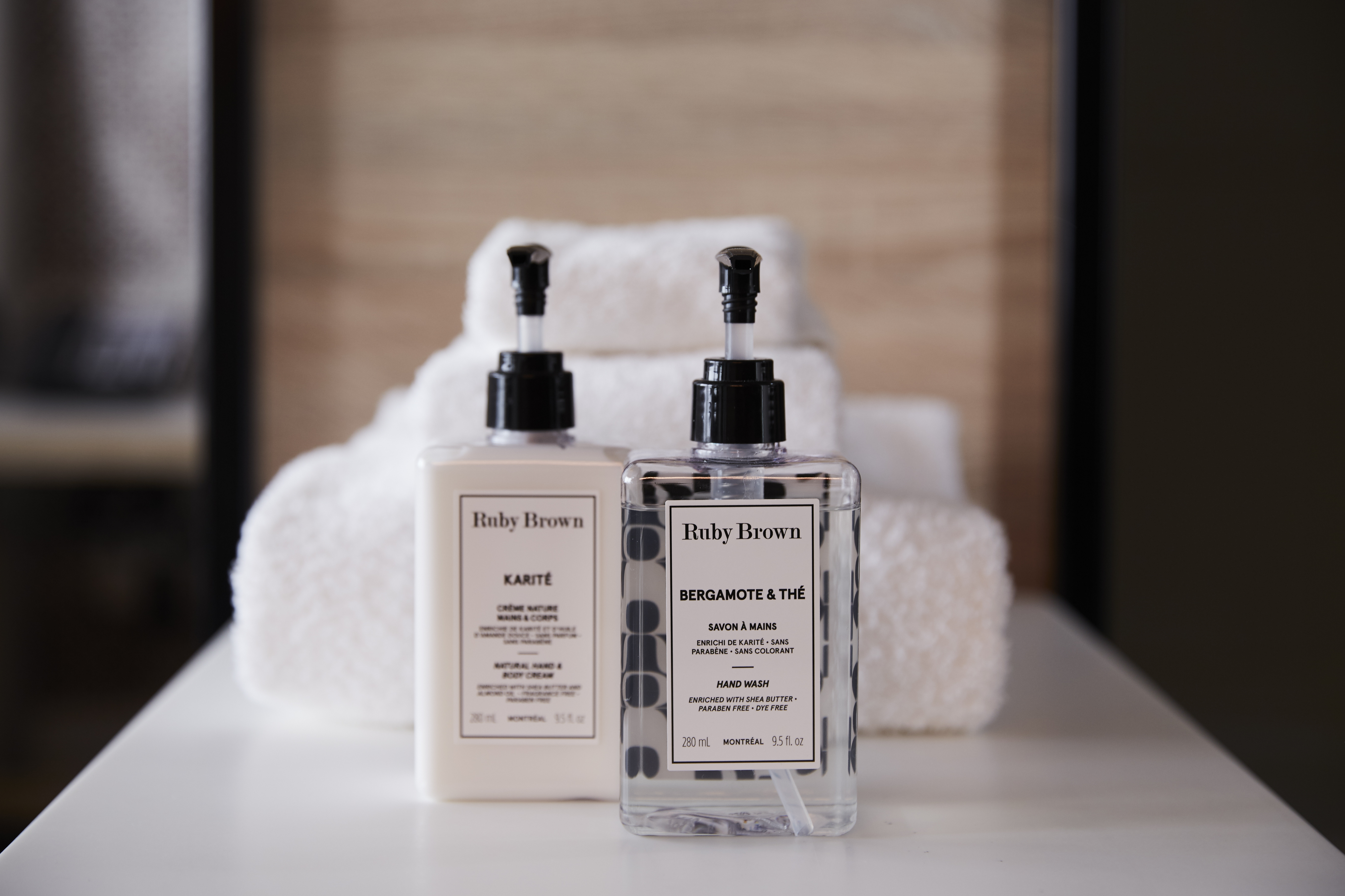 D’abord, l’ex-mannequin et entrepreneure Ruby Brown a conçu une gamme de produits de bain exclusive parfumée à la bergamote et au thé. Ensuite, les cuisinettes – toutes les chambres en sont pourvues, c’est le concept – sont équipés de linges à vaisselle fabriqués à la main à Montréal par l’équipe de Bigarade. Enfin, des vêtements aux coupes modernes signés Frank And Oak habillent le personnel de l’établissement.