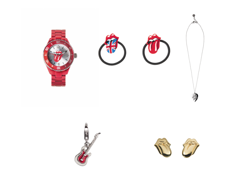 Personnellement, même si je ne suis pas une fan finie de Mike Jagger et de sa gang, je trouve les boucles d’oreilles en forme de langue et les montres avec la célèbre effigie pas mal chouettes.