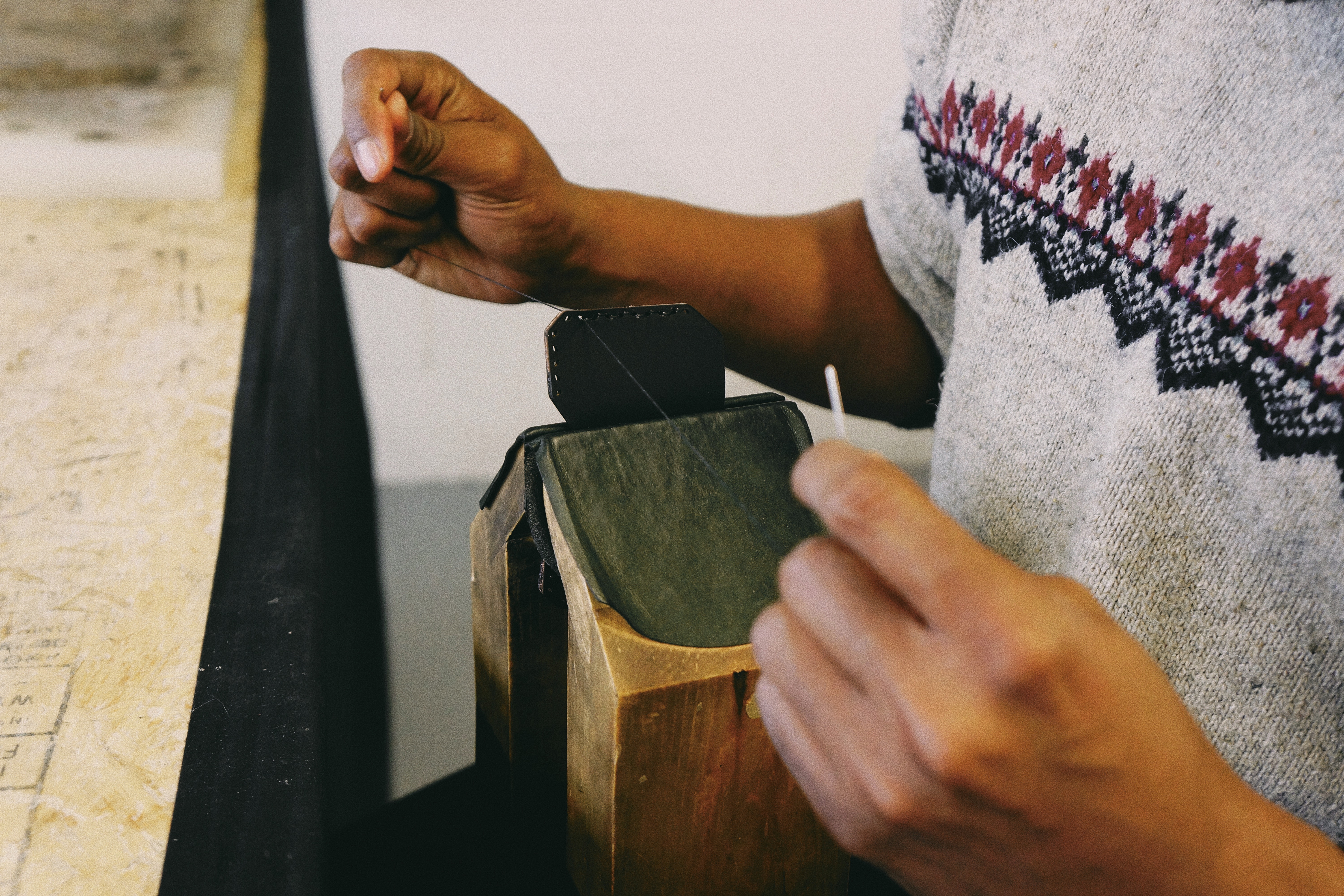 «Beaucoup de marques de maroquinerie cousent leurs produits à la machine, mais nous nous distinguons en cousant tout à la main», souligne le designer. Pourquoi, est-on tenté de demander? Pour offrir des produits qu’on garde pendant des générations, répond Jordan Lajoie. La technique centenaire qu’il privilégie – la couture point sellier – est d’ailleurs reconnue pour sa durabilité.