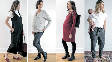 «En termes de coupe, on a beaucoup de contraintes, parce qu’il faut que ça fasse à plusieurs silhouettes, surtout qu’il n’y a pas que la bedaine; quand on est enceinte, toute la silhouette change. C’est l’fun que les vêtements nous fassent encore, même quand on n’est plus enceinte.»