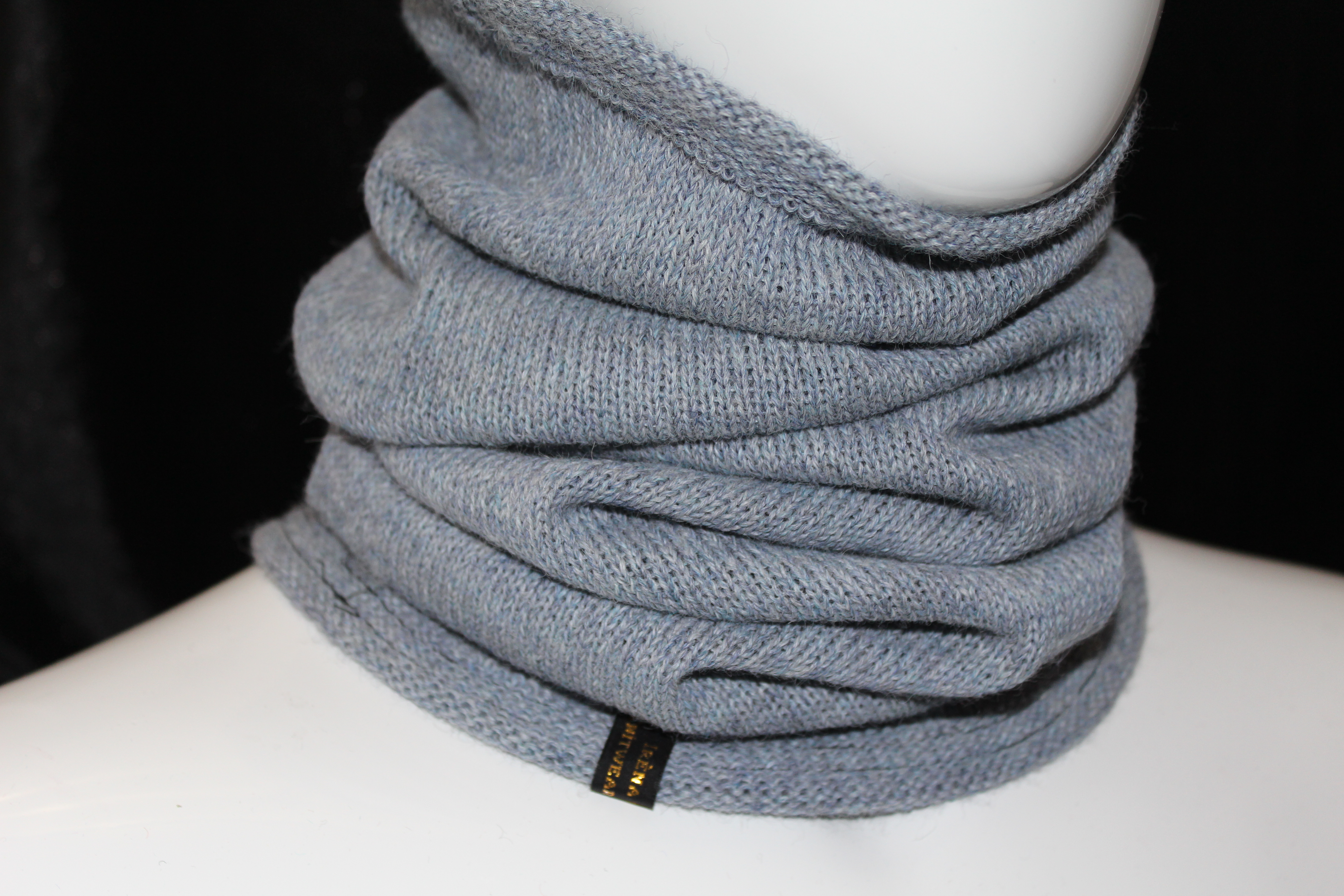 Les cache-cou, ce n’est pas seulement pour les enfants! Les tricots d’Irena Geerts sont faits de laine d’alpaga, à la fois douce et chaude.