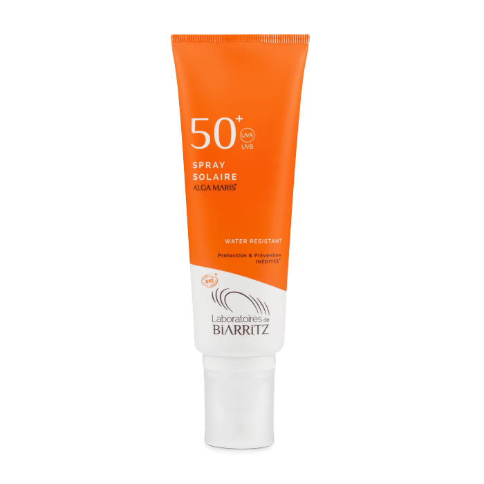 Spray solaire 50 + Alga Maris, Laboratoires de Biarritz, 46$ chez Avril, dans les pharmacies Brunet et au Bio Spa Enaam