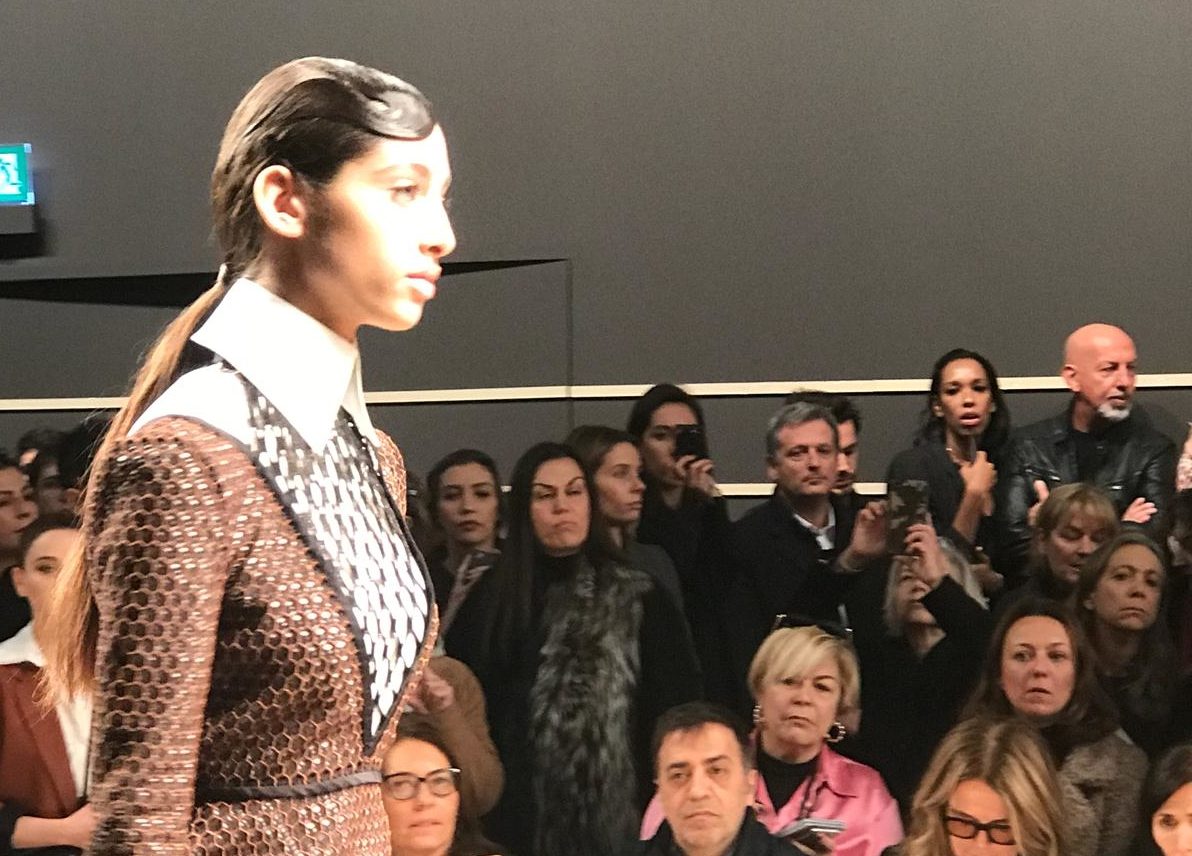 Chez Versace, le manifeste était clair avec la musique de Nirvana en bande originale pour des robes épinglées, des brassières enlacées de lanières en cuir. Chez Agnona aussi l’influence était revendiquée par le créateur Simon Holloway mais dans une version luxe, calme et volupté: des jupes écossaises, des doc Martens, de grands bonnets et grand gilets dans des matières artisanales et des tons beiges, gris, taupes qui venaient adoucir l’effet Smells like Teen Spirit de Nirvana.