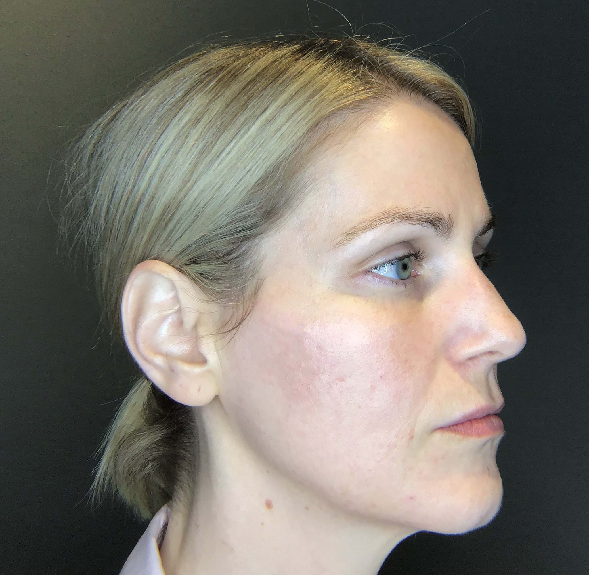 Pour corriger cela, elle a procédé à l’injection d’acide hyaluronique dans les lèvres. Après avoir subi plusieurs injections deux semaines auparavant, je pouvais comparer les traitements, et les injections aux lèvres sont de loin les plus inconfortables. Heureusement, cela a totalement contrecarré l’asymétrie.