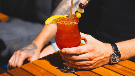 Sur le vaste choix de jus à goûter se trouve le Vin Nouveau L’Orange, un vin ontarien au goût de pamplemousse et d’abricot. Laissez-vous aussi tenter par leur version maison du Bloody Caesar, le Caesar Minéral : vodka, recette secrète, Clamato et sel à la lime. À noter qu’il y a de la nourriture à consommer sur place pour accompagner votre apéro, comme des fruits de mer, des tapas et des charcuteries.
