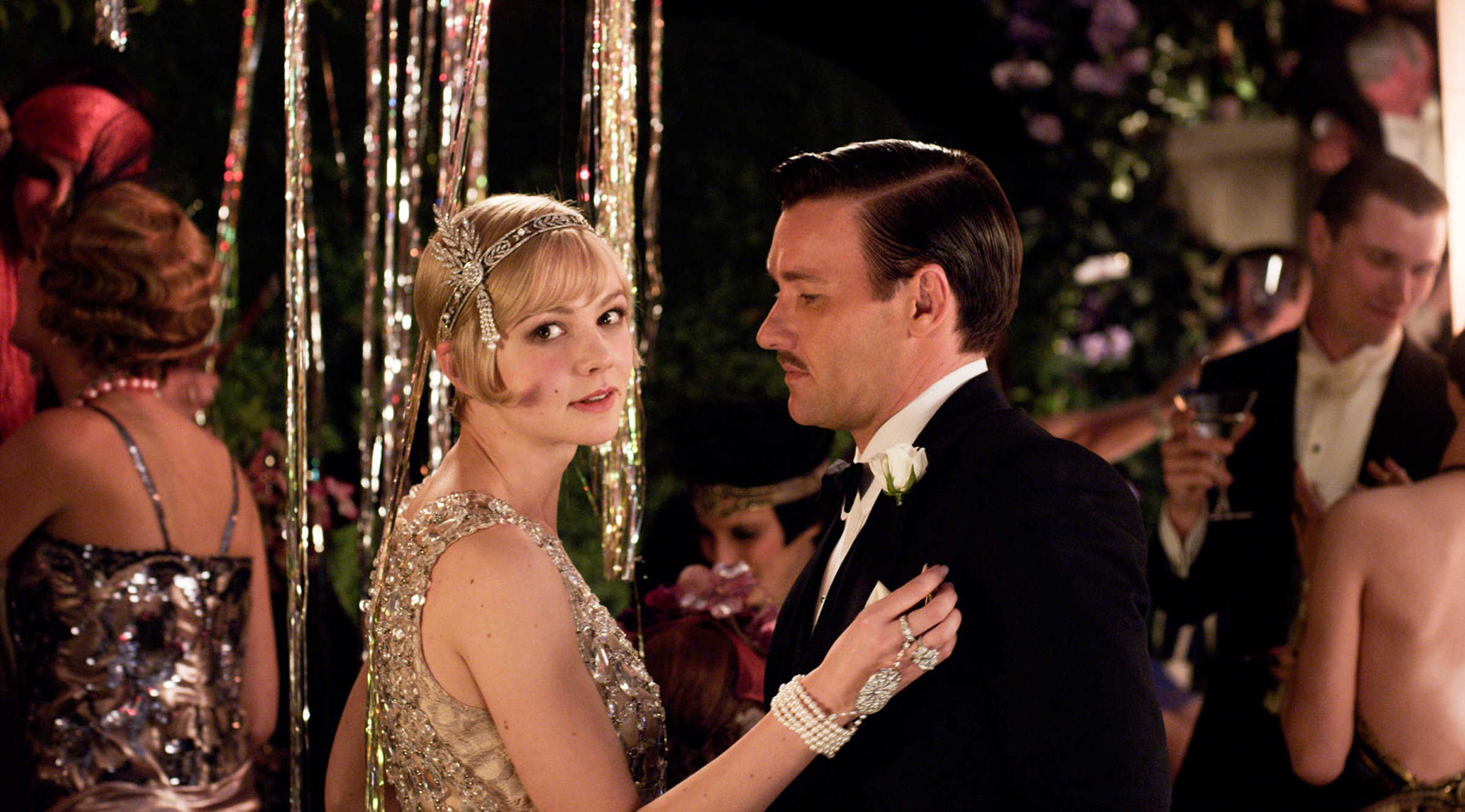 Dans The Great Gatsby (Gatsby le magnifique, adaptation d’un roman de F. Scott Fitzgerald), Leonardo DiCaprio et Carey Mulligan portent des créations spectaculaires conçues en collaboration avec la costumière Catherine Martin à partir de bijoux extraits des archives de Tiffany & Co. : des boutons de manchette ovales en émail noir et or 18 carats, un bandeau orné de diamants et de perles de culture, une bague à diamants, des boucles d’oreilles à diamants jaunes et une broche, notamment. Nul besoin de préciser que les protagonistes du film évoluent dans les sphères aisées…
