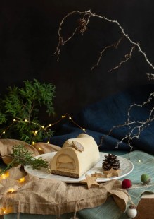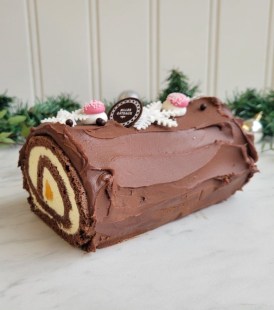 Pour un look traditionnel, il faudra opter pour la bûche roulée chocolat-orange. Sinon, on aura le choix entre les saveurs pomme, érable, tournesol ou vanille, fraise et rhubarbe. Chacune des trois bûches peut être commandée en format 6 ou 8 parts.