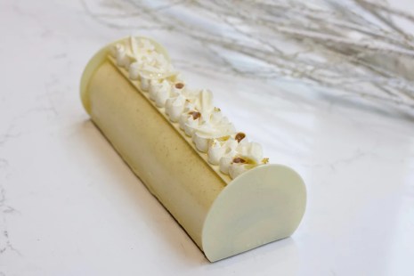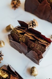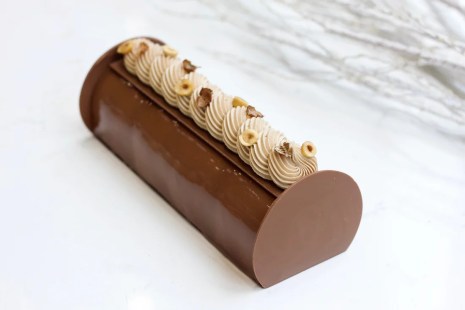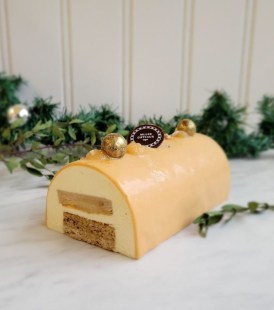La pâtisserie du Village qu’on adore pour ses macarons sans gluten et ses desserts au matcha propose cette année trois bûches originales et élégantes pour les Fêtes. Pour les friands de chocolat, il y a d’abord la Madera, couverte de pièces de chocolat, à base de mousse au chocolat fumé au thé noir et d’un cœur crémeux à la banane, feuillantine et miso au caramel salé. Sinon, pour des saveurs plus fruitées, Sachère Desserts a créé une bûche végane, la Mosaïque, aux fruits de la passion et mangue, et une bûche sans gluten, la Kamilia, aux clémentines, miel et marrons.