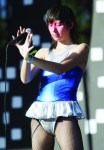Alors que les Yeah Yeah Yeahs viennent de lancer leur quatrième album, Mosquito, Karen O, le caméléon de la bande, qui opte toujours pour des tenues de scène voyantes, adopte un nouveau style. Premièrement, elle est maintenant blonde. Et elle porte ces temps-ci des ensembles à la Elvis Presley incrustés de cristaux créés par son ami, le designer Christian Joy. Retour en images sur quelques favoris des dernières années.