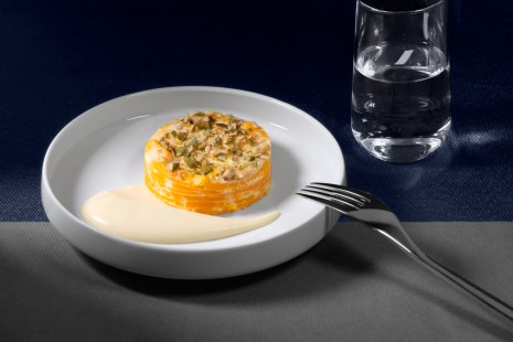 Pour chaque vol, les passager.ère.s ont ainsi le choix entre un plat végétarien et un autre à base de volaille, tous deux imaginés par Olivier Perret. Des mets d’inspiration française, mais avec une twist québécoise, comme en témoignent les bleuets, le sirop d’érable ou encore les fromages d’ici intégrés au menu.