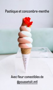 La crème glacée pastèque, concombre-menthe et fleurs comestibles de Sachère Desserts