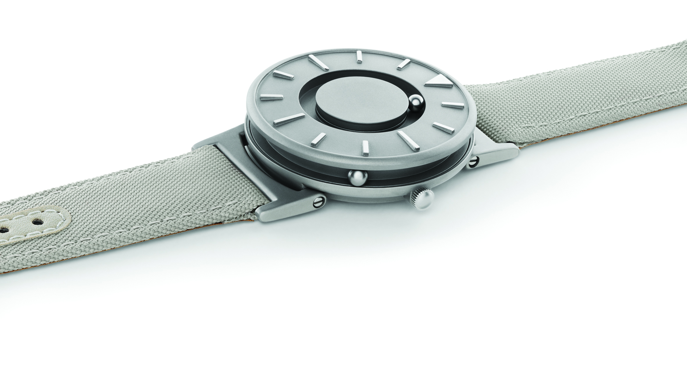 La Bradley – baptisée ainsi en l’honneur de l’athlète paralympique et vétéran américain Bradley Snyder, qui a perdu l’usage de la vue en combattant en Afghanistan – est un objet remarquable, d’une conception minimaliste. Son cadran ne comporte ni chiffre, ni aiguille; on trouve plutôt en son centre une profonde rainure circulaire que parcourt une petite bille de métal afin de donner les minutes. Sur le pourtour de la montre, une deuxième petite bille, celle indiquant les heures, parcourt une seconde rainure qui divise la montre, un peu comme la corde d’un yo-yo en sépare les deux moitiés.