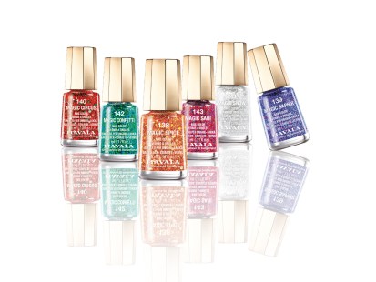 Les plus timides opteront sûrement pour le vernis, qui apporte une petite touche de bling qui reste discrète. Les amoureuses de la couleur se tourneront vers Mavala, qui propose six mini vernis à paillettes aux teintes festives (rouge, orange, émeraude, saphir, fuchsia et argenté) pour coordonner à n’importe quelle tenue (Vernis Mini Color’s Magic Stardust, Mavala, 8$ l’unité). Même combat chez Marionnaud Paris qui présente cinq vernis laque spécialement créés pour les fêtes : rouge, bronze, argenté ou doré. (Vernis Laque, Marionnaud Paris, 7$ l’unité)