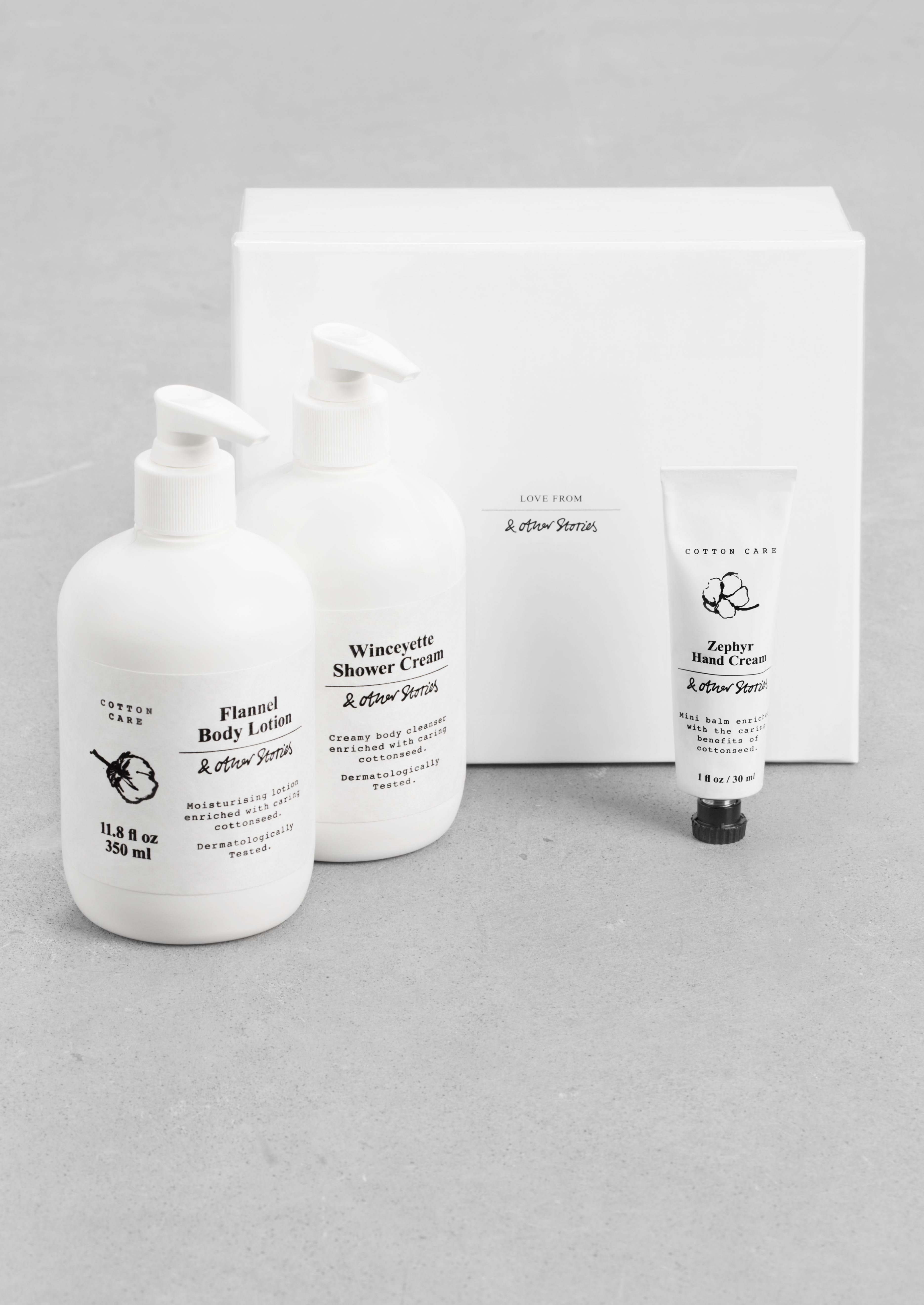 La marque de vêtements s’est lancée il y a quelque temps déjà sur le secteur de la beauté. Et en cette fin d’année, elle propose des kits de ses produits Cotton Care, parfait pour hydrater et réparer la peau abîmée par le froid. Si la crème pour les mains est présente dans les deux kits, l’un propose ensuite un gommage et une huile pour le corps tandis que l’autre comprend un gel douche et une lotion corporelle (kits Cotton Care, & Other Stories, 42$ et 35$, en exclusivité sur www.stories.com).