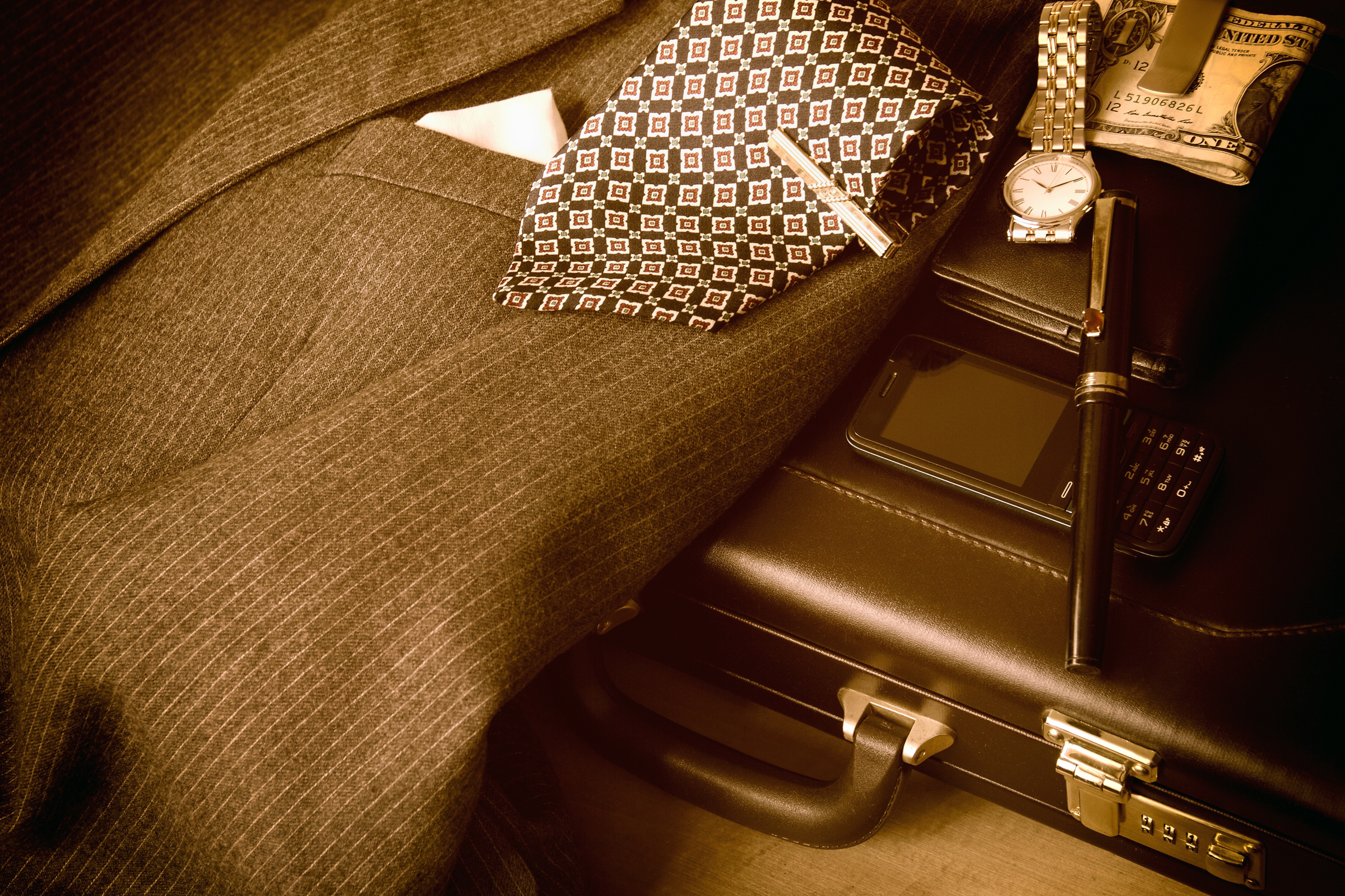 Le mouchoir de poche, l’épingle à revers, la pince à cravate, les chaussettes colorées, les bretelles, etc., ajoutent de la gueule à votre tenue.