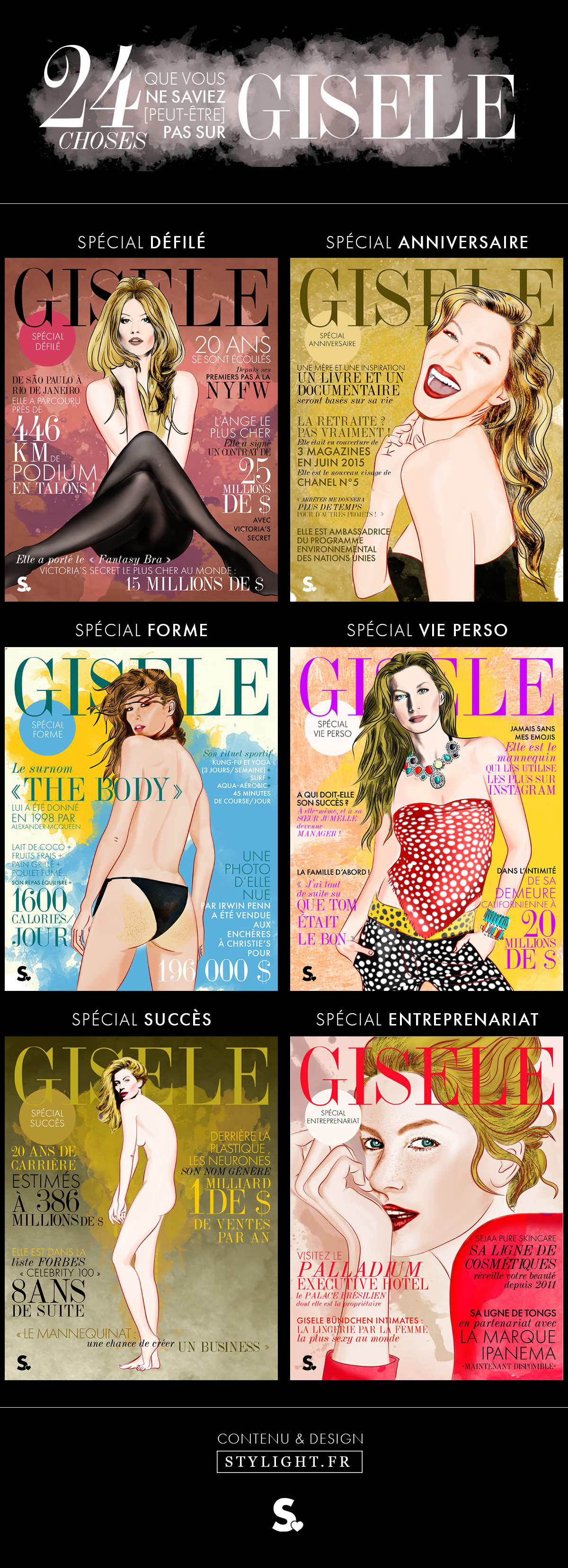 À l’occasion des 35 ans de Gisele Bündchen, le lundi 20 juillet, la rédaction de Stylight.fr a élaboré une infographie sur le mannequin brésilien le plus connu au monde.