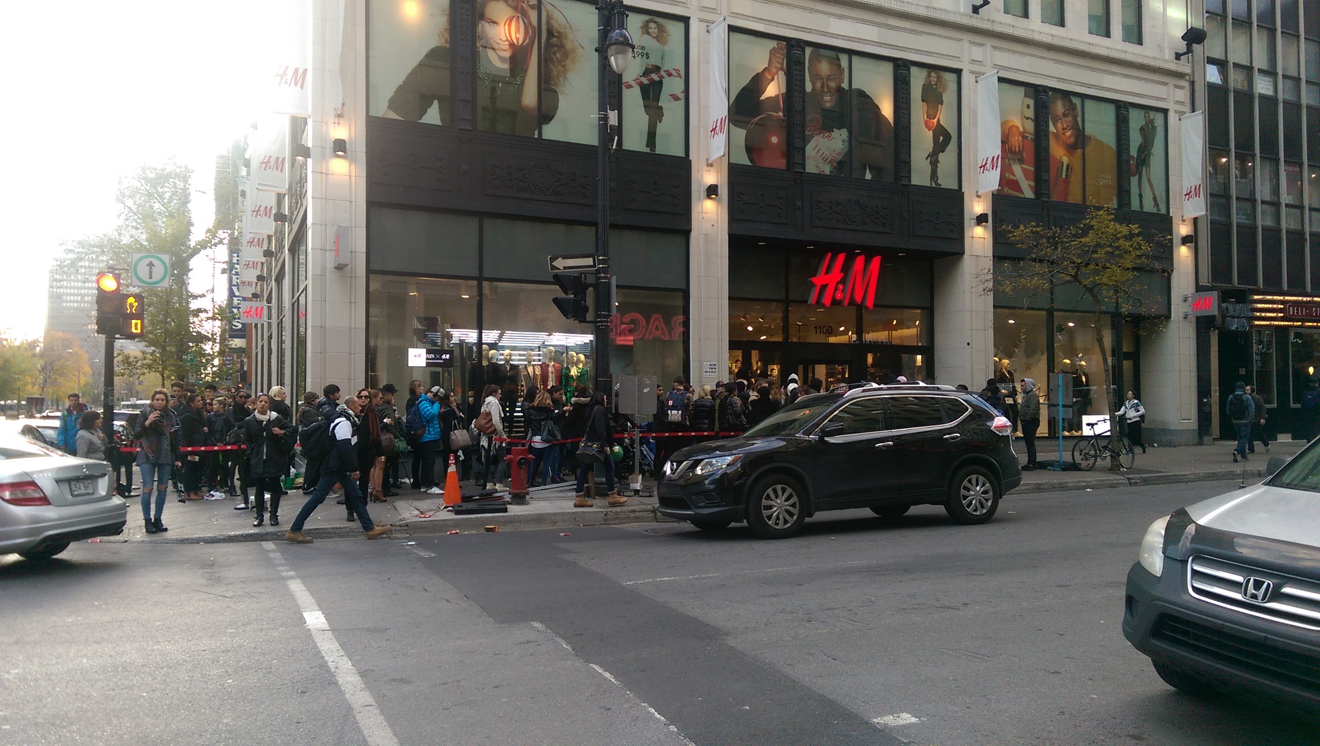 Quelques dizaines de fashionistas montréalais ont fait la file jeudi dès l’aurore devant la succursale H&M de la rue Sainte-Catherine, située au coin de la rue Peel.